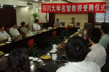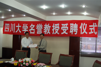 Vice-Principle Prof. Shi Jian awarded Honorary Professor-ship of Sichuan University to Prof. Stephen Cheng. Prof. Stephen Cheng thanked Sichuan University for the invitation. He said he would strive to promote the cultivation of talents and the scientific research work.