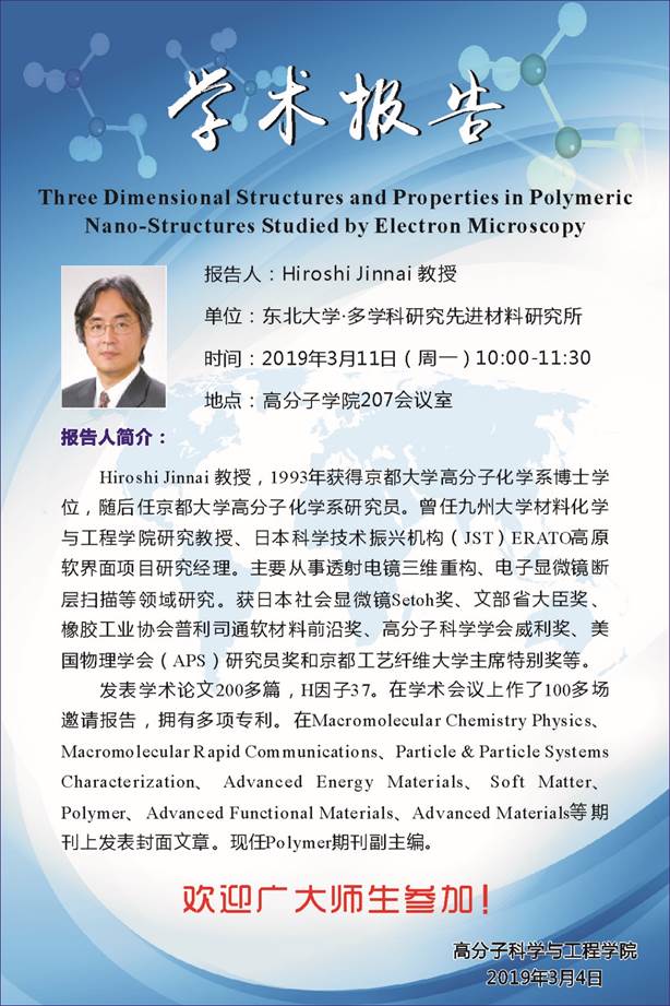 Speaker: Prof. Hiroshi Jinnai, Institute of Multidisciplinary Research for Advanced Materials, Tohoku University