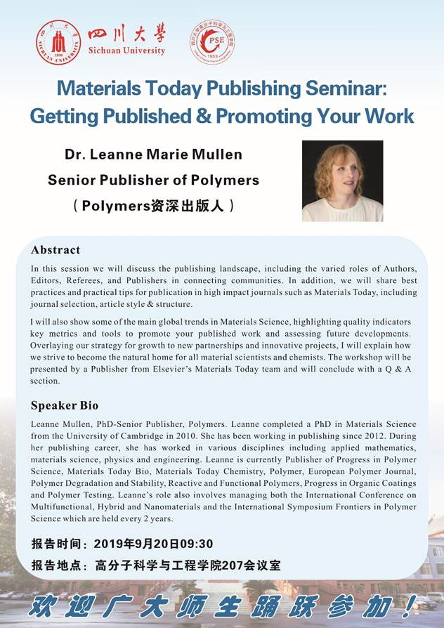 Speaker: Dr. Leanne Marie Mullen, Senior Publisher of Polymers