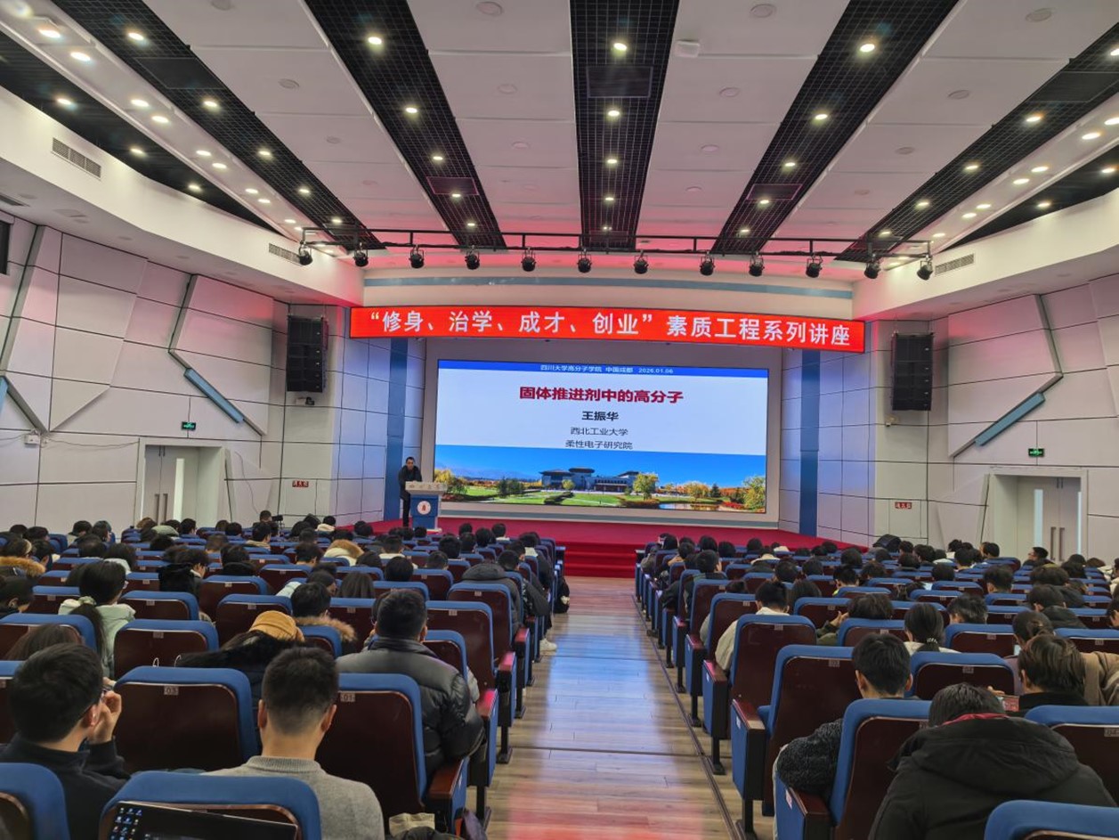 2026年1月9日,我院“修身、治学、成才、创业”素质工程系列校外专家讲座在91论坛 望江校区成功举办。本次活动特邀川大高分子的两位校友,电子科技大学引进人才王东升副教授及西北工业大学王振华副教授担任主讲嘉宾,围绕高分子材料研究、工程应用及高材人的成长经历展开分享。讲座由91论坛 徐源廷副教授主持,91论坛 2023级本科生参加了此次活动。