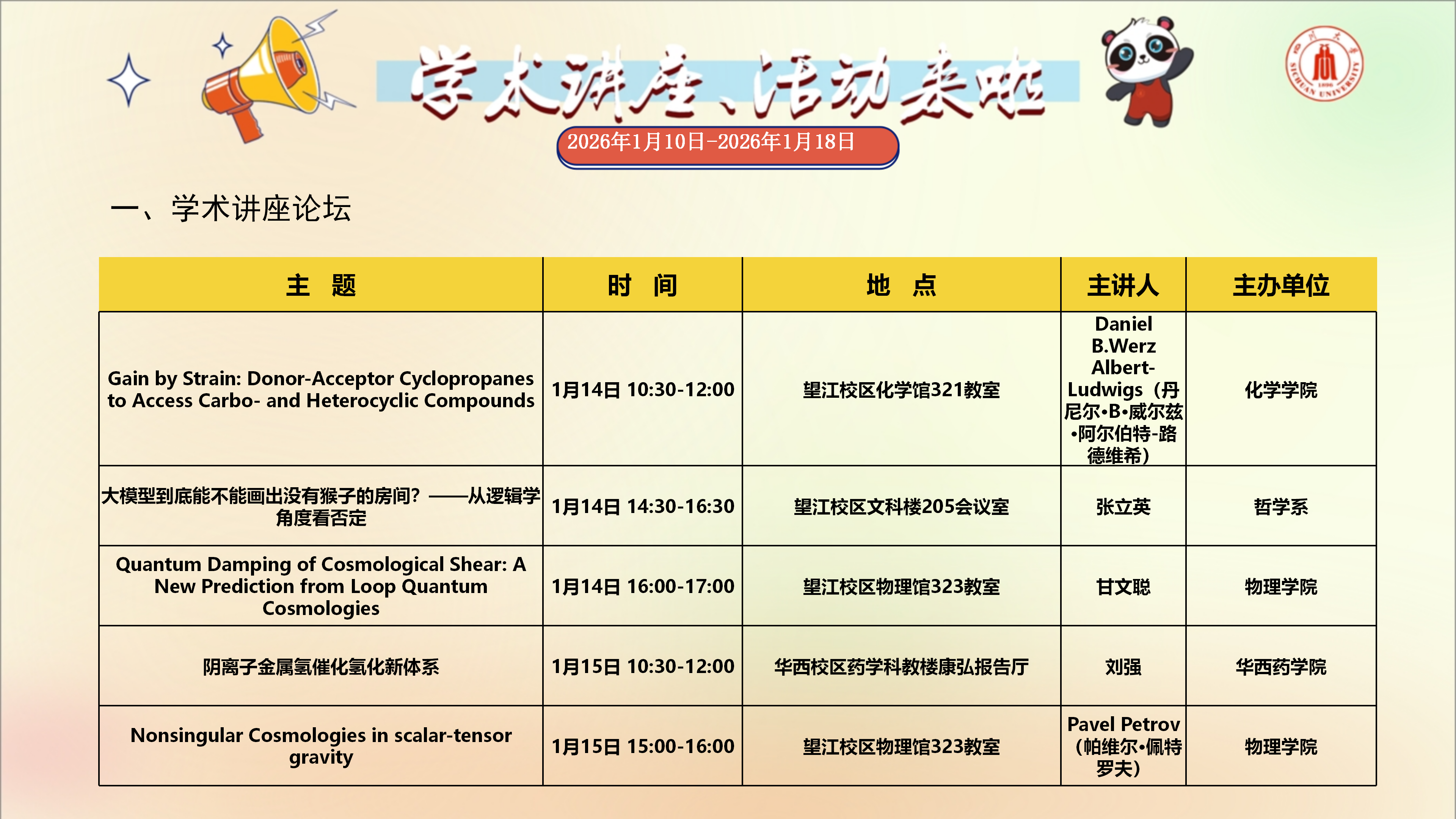 学术讲座预告(2026年1月10日-2026年1月18日)